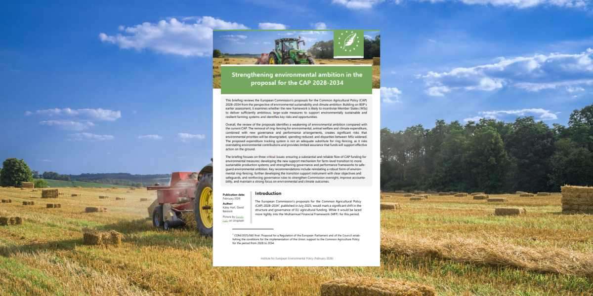 This briefing evaluates whether the Commission’s proposals for the Common Agricultural Policy (CAP) for the period 2028–2034 are fit to drive the scale of environmental and climate action Europe now needs. Despite some positive steps, the proposed framework could ultimately undermine environmental ambition if key weaknesses in funding, governance and performance monitoring remain unresolved.