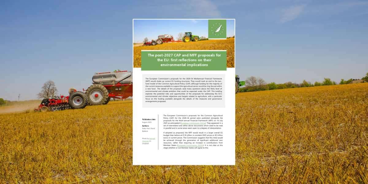 In July 2025, the European Commission published its proposal for the Multi-annual Financial Framework (MFF) and the Common Agricultural Policy (CAP) for the 2028-34 period. This briefing provides initial reflections on whether they provide the mechanisms and scale of funding needed to drive progress to meeting the EU’s sustainability objectives and targets for the coming decade.